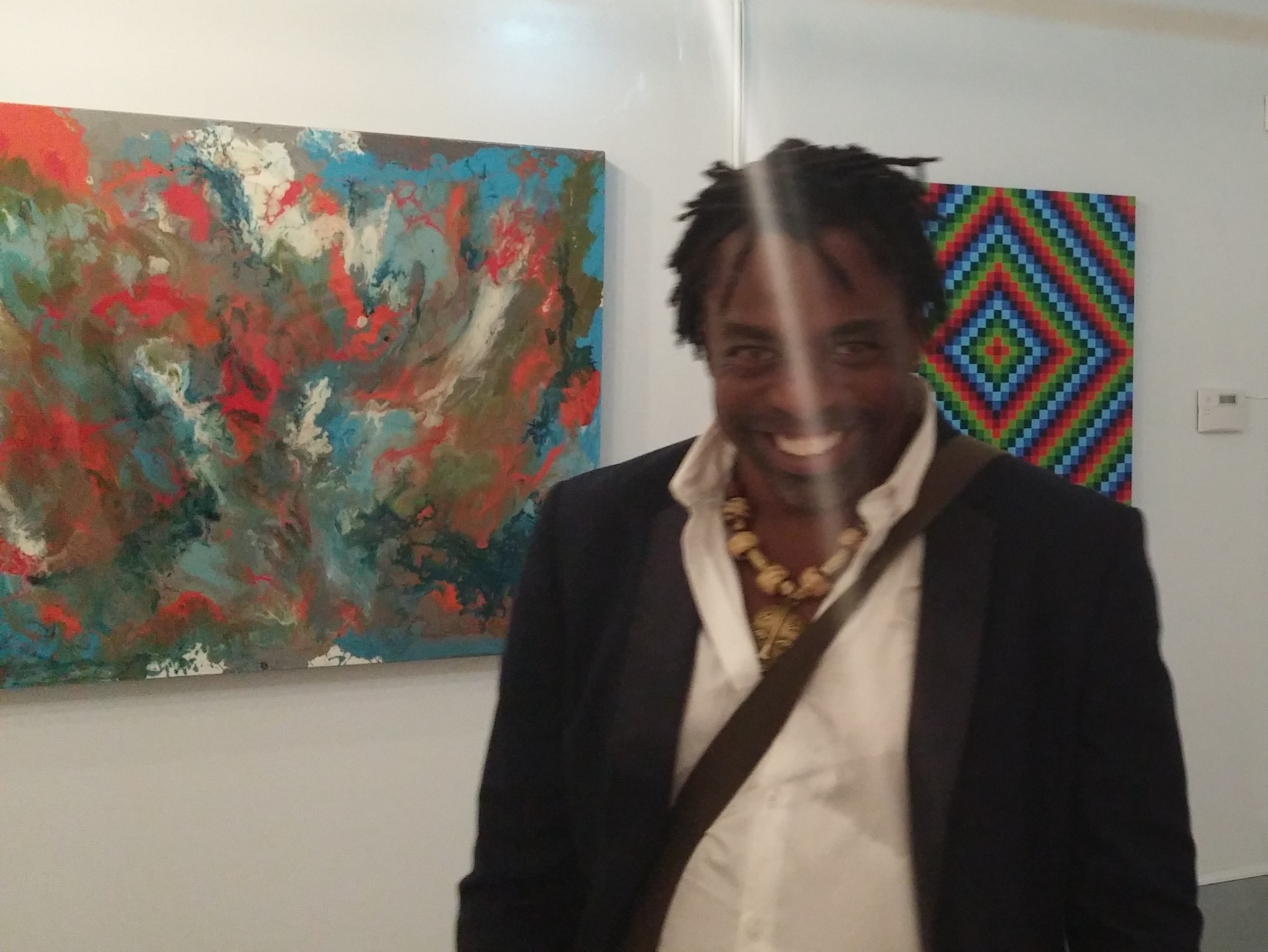 From the figurative work of Johnson leading to Acosta's art primitve style and abstract work, to Maneli's shadowy shapes, to Estelle's abstract liquid works and of course, Hinos' completely abstract pieces, the room flowed from one composition to the next. It was gently and intelligently curated without seeming institutional.