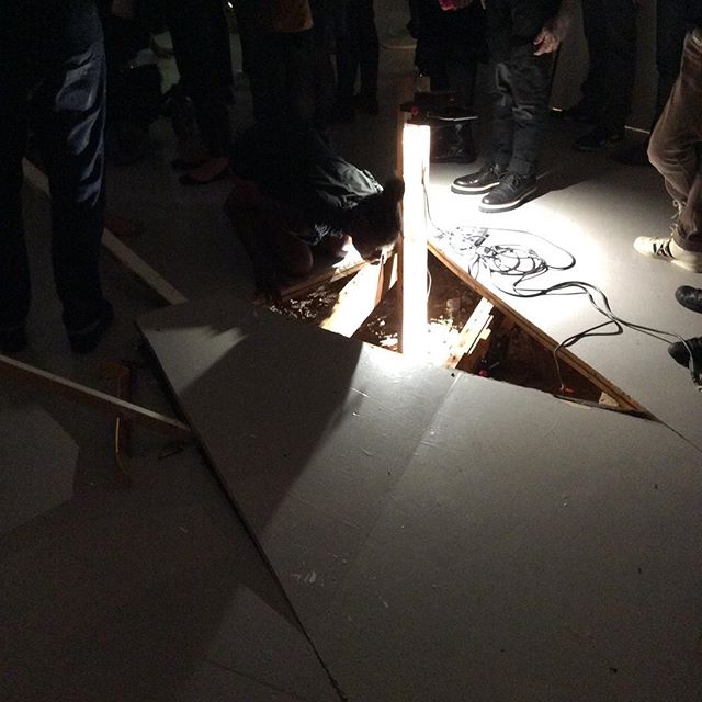 The entire display of many members as a whole made the performance outstanding but the speech was not loud enough and lacked conviction in the voice. There was an audience member who got carried away but the meaning was there nevertheless. He was moved by what he saw and it stuck with the mission of the group and Lace gallery.  It was engaging indeed as the collective moved throughout the audience. The performance was very tense as they carried the floor boards to and froe throughout the gallery.  It was quite a spectacle.