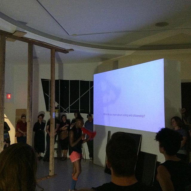 L  ACE, Los Angeles Contemporary Exhibitions was founded in 1978 by a group of LA artists. It is a "nonprofit venue that facilitates exhibits and innovations in making art with a focus on strong public engagement". Nestled in the heart of Hollywood on Hollywood Boulevards trendy Cahuenga area it has served as a free and "open to the public experimental space". The renowned venue has fostered several generations of young artists including the one's in this article, and also newer art forms such as performance art, video art, digital art, and installations as well as educational initiatives. It was an interesting night filled with performance and conceptual art, some torn floor boards and carpeted walls. Photography of the women who carry the struggle (floor boards). It was a packed full house of energy in the entertainment capital of the world. The deconstructivism represented the nations confrontation with "regularly mediated deaths of Black bodies" and the School for the Movement of the Technicolor People's goal of "excavating, dismantling, reflecting and denying recognition". Taisha Paggett's performance was good but lacked vocal confidence.