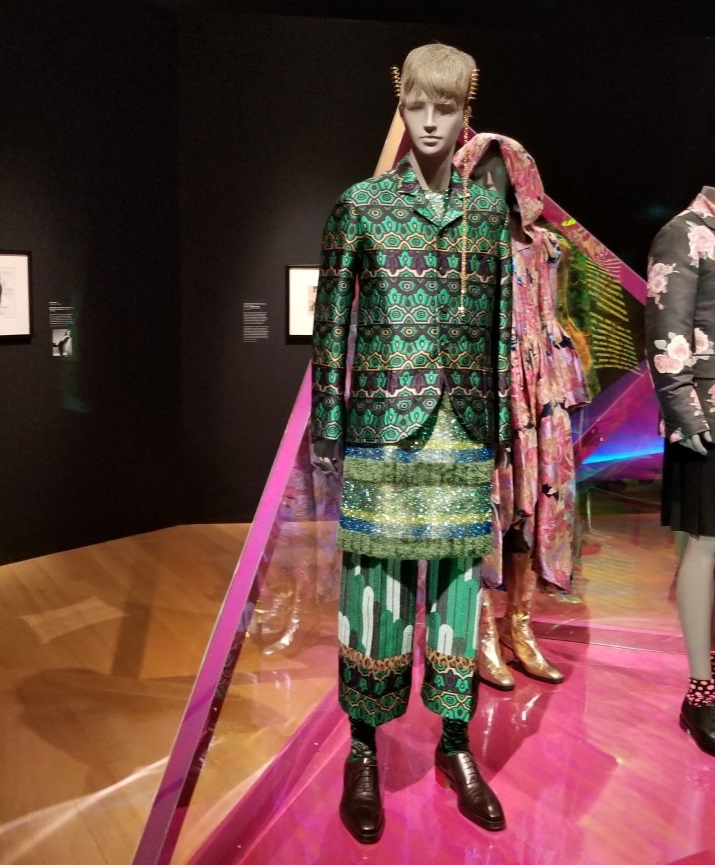 |  Gender Bending Fashion at MFA Boston will certainly have you intrigued. A retro-cool exhibit featuring Sci-Fi attire from famous designers around the globe. At one point I thought I was on the set of Star Trek The Next Generation. Especially when I saw the super-sonic earing on a male/female figure. It was fun and exciting and I liked what the curators did with the room. Neon lights and mounts for the mannequins really brought this exhibit to another place. Walter Van Beirendonck took the prize in my eyes but many other famous artists really lit the room. Allesandro Michelle for Gucci was another hit maker at the party and Jean Paul Gaultier happened to catch me off guard. I was drawn to these three. Every time I saw a piece I liked, I looked down at the plaque and it was one of these three ground breaking designers. The connection to music was also an important moment at the exhibit with the wall of albums. From David Bowie and his ground breaking style to Annie Lennox and her own gender bending moves, this parallel ran deep. Gender fluid or non-binary are terms that can also be applied to clothing and even artist personas. I like the historical aspect that was thrown in, such as kilts for Scotts. This really put the exhibit into another stratosphere. The premise is that clothing is how we perceive these objects in our own society. A kilt worn today looks like a skirt, for Greek and Scottish soldiers, these skirt-like pieces were common place. They were also very masculine identifiers, and it is only in our immediate surroundings that we do not understand this connection. We simply do not see many males wearing skirts. We are not use to the idea. Once we are programed to accept everything, nothing will seem out of the ordinary. The trend in the 80's, where women were wearing suits was also popular, but that was a fashion choice that has come and gone many times. In fact, the Suffragette movement in 1910 brought about women's first suits labeled, the suffragette suit. In the movie "A simple Favor," Blake Lively's character wears a suit with cuffs. Maybe we will evolve in our society and think a skirt or dress is just like pants and vice versa, no gender required.     4 - 30 - 2019 BY TEAM VVIPURR 2019 Source: MFA BOSTON NOTES ARTCOWO © PRESS |
